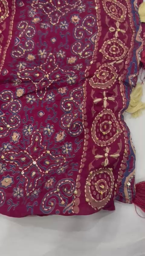 Work: Ajrakh Hand Block Print + Hand Kaatha Embroidery
